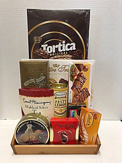 Le Délice Une sélection de douceurs qui plaisent à tous...Idéal pour toute occasion! Dans ce panier, vous trouverez une boîte de chocolats Droste, biscuits Nathan, gaufrettes Dolcetto, biscuits aux brisures de chocolat, fudge, biscottis, bonbons aux fruits, biscuits sablés, chocolat noir Continental, cacao suprême, caramels, différents chocolats Guylian, délices aux cerises, truffes françaises et belges. |