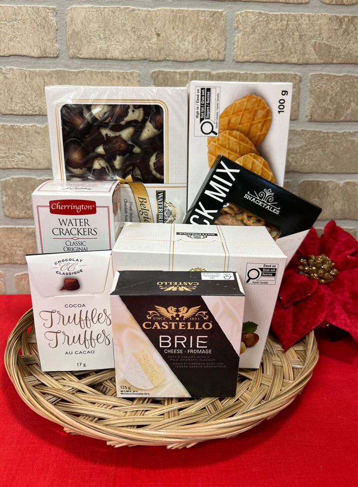 HOLIDAY WISHES This woven tray includes cheese, crackers, snack mix, cookies and truffles. A thoughtful gift to show your appreciation. |